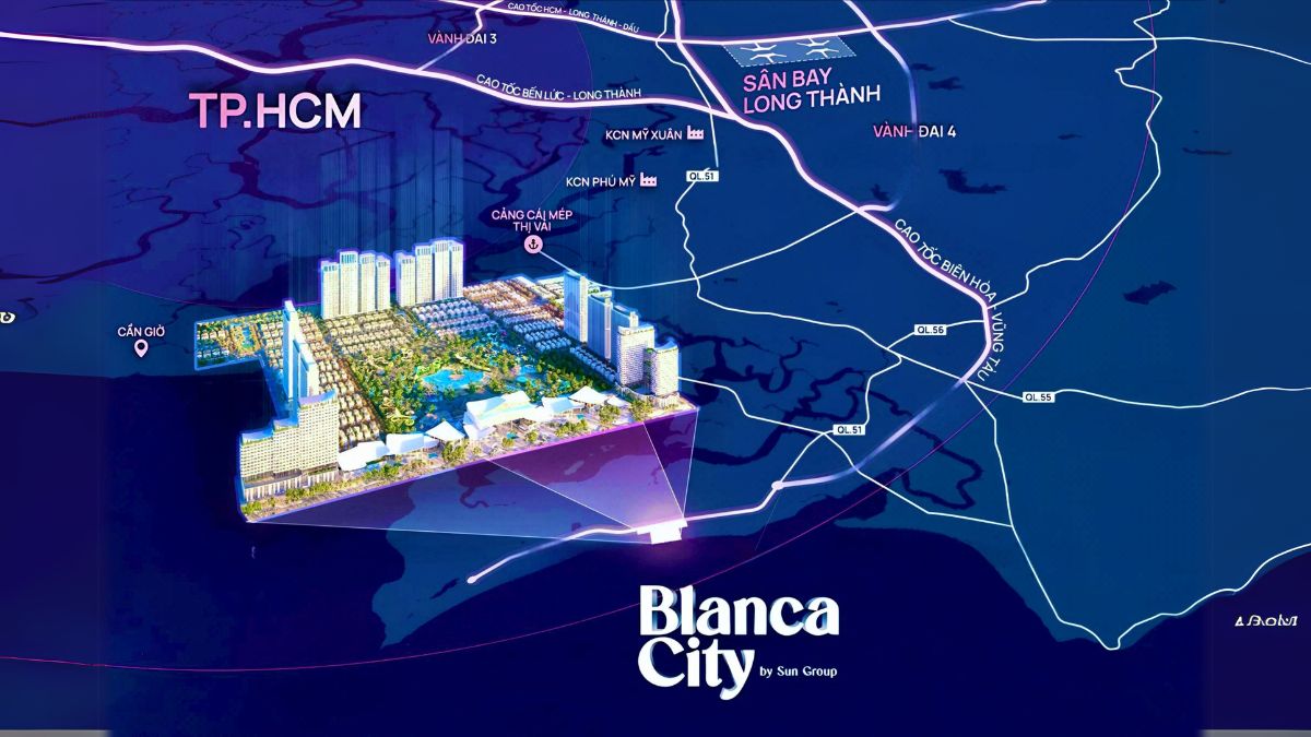 Vị Trí Blanca City Vũng Tàu - Đối với bất động sản, vị trí luôn là yếu tố vàng, quyết định giá trị và tiềm năng sinh lời của một dự án. Với Blanca City Vũng Tàu (hay còn gọi là Sun Blanca City), một siêu đô thị biển được kiến tạo bởi Tập đoàn Sun Group danh tiếng, vị trí không chỉ là một điểm trên bản đồ mà là cả một nền tảng chiến lược, kiến tạo nên một biểu tượng sống, nghỉ dưỡng và đầu tư đắt giá tại thành phố biển Vũng Tàu.